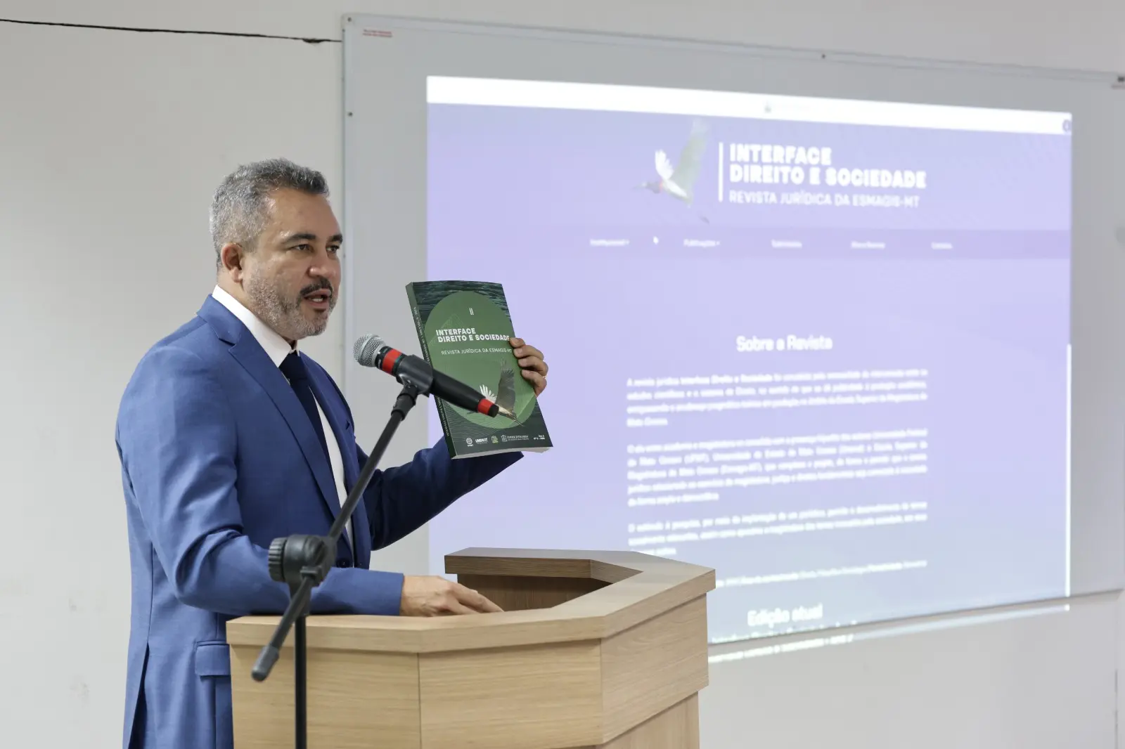 A revista, criada em 2024, busca fomentar a pesquisa e a reflexão crítica sobre as interfaces entre Direito e sociedade. A entrega simbólica do exemplar impresso foi feita pela desembargadora Anglizey ao diretor-geral da Esmagis-MT, desembargador Márcio Vidal, e representantes das universidades parceiras.