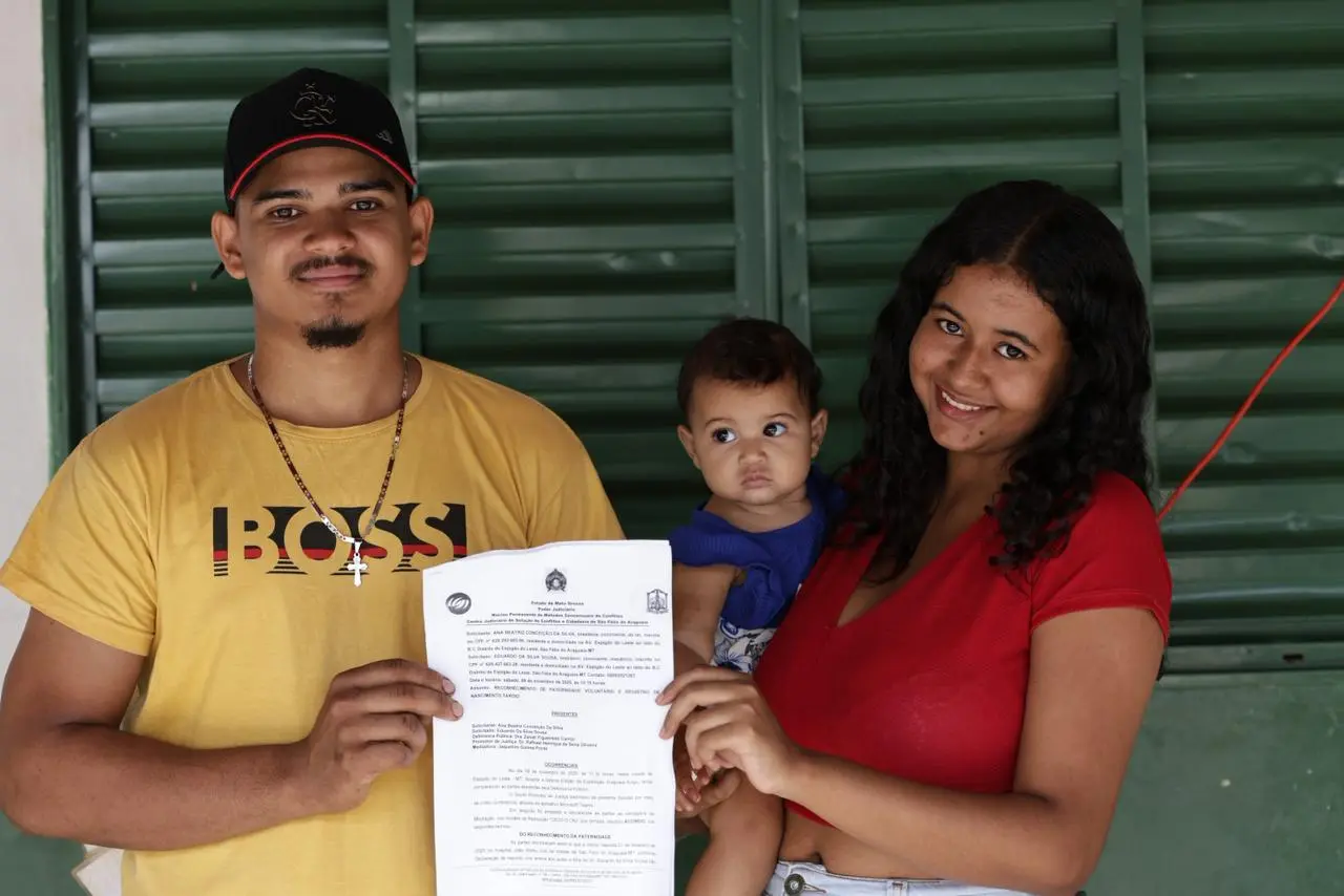 Morador de Espigão do Leste, distrito de São Félix do Araguaia (1.060 km de Cuiabá), o menino nasceu em período de forte chuva, inviabilizando o deslocamento até a Comarca mais próxima. Depois, a rotina de trabalho da mãe, Cláudia Fernanda Gomes Pereira, e a ausência de transporte tornaram o registro ainda mais difícil. O cartório mais próximo fica a cerca de 200 quilômetros de estrada de chão. “Eu sabia que precisava registrar meu filho, mas não tinha como viajar. Trabalho, outros filhos pequenos, e a distância… tudo ficava impossível”, relatou Cláudia.